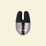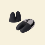 A compact external vibrator designed for focused vulval stimulation. The dual arms deliver direct vibration to the clitoris and surrounding areas, powered by two separate motors for layered sensation. With fifteen modes and six intensity levels, it offers a wide range of stimulation in a quiet, lightweight form. The soft silicone body fits comfortably in hand, and can also be used on other external areas for more exploratory touch. Includes an optional textured sleeve for added variation.